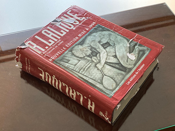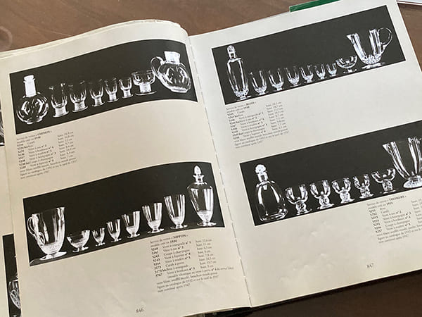 | えらく年季が入った風貌の分厚~い本。こちらが、ガラス工芸の巨匠、ルネ・ラリックのカタログレゾネです。「レゾネ」とはフランス語で論理的という意味の言葉で、もともとは美術品の真贋根拠となるように作成された作品全集のことを指します。 この本にはルネ・ラリックのすべてが網羅されており、その収録作品数はなんと3,700点!!!!この分厚さも納得のボリュームです。 ![]() この本の著者、フェリックス・マルシラックさん。1941年パリ生まれ、アール・ヌーヴォーとアール・デコ美術の著名な研究者です。ルネ・ラリックのほか、エミール・ガレやドーム兄弟など、さまざまな芸術家に関する研究書を執筆。彼の著作は国際的に評価されており、美術展やオークションなどで公的な参照文献として扱われています。 このルネ・ラリックのカタログは、10年にわたる研究と撮影、編集作業を経て、1989年に満を持して初版が出版されました。制作にはラリック社をはじめ、ルネ・ラリックの親族、ラリックとビジネスパートナーであった香水メーカーや自動車メーカー、世界各地の美術館やギャラリー、コレクター、日本の専門家の協力もたくさんあったそうです。 カタログは大きく分けて3部構成で、1895年から1945年までのルネ・ラリックの生涯と経歴、作品の制作技法についての詳細な解説、そして全作品の図版と詳細が記載されたデータベースとなっています。 ![]() 作品はルネ・ラリックによる分類によってジャンルごとにリスト化。こちらは花瓶のページ。 ![]() テーブルグラスもすべてのデザインがきちんと掲載されています。 この本を作るためにいったいどれほどの労力がかかったのか…想像するだけで気が遠くなります。実は、トップ写真の緑の本は2011年発行の最新バージョン。1989年の出版からいくつかのバージョンが再発行されており、ルネ・ラリック作品を現代に受け継いでいく立役者的存在となっています。 ![]() こちらは2004年バージョン。赤い表紙になっていますね。 ![]() そしてこれが初版!!黒いカバーに文字のデザインも現行バージョンと違っていてかっこいい。よく見ると表紙の作品も向きが変わっています。この表紙の「Le verrier(ガラス職人)」は、1925 年にパリで開催された国際現代装飾産業美術博覧会(通称アール・デコ博覧会)の工芸館の扉のためにルネ ラリックが制作したガラスパネルです。(ちょうどその100年後の今、大阪・関西万博が開催されていますね~。) 実はカタログレゾネの情報は細かいところは初版と第二版、最新版とでは変わっていたりもします。膨大な数の作品が収められていますので、記載間違いや記録ミスは稀にあるようです。特にサイズは実際に測ってみると結構ちがうことも多々あります。ただ、カタログのサイズと違うからといって贋作という可能性はまずありません。ラリックは型ですべて制作されていますので、もしニセモノを作るなら型からすべて作らないと駄目で、技術的に不可能ですしまったく割に合わないからです。 当ギャラリーの作品をカタログレゾネと共にご覧ください。 ![]() ![]() 花瓶「ランピオン」 カタログには番号が割り振られており、991番が付けられています。991番目の作品ということです。そして作品タイトルと制作年月日。成型方法や技法、サイズまで事細かに記載。そして最後の備考には何年まで作られていたか、さらに他に似たデザインの作品がある場合はそんな関連情報まで書かれていたりもします。 ![]() ![]() 香水瓶「真夜中」 香水瓶のページには販売されていた香水メーカーの名前と共にナンバリングされています。真夜中は「WORTH」から販売された1番目の香水瓶ということですね。サイズも大・中・小と3種類書かれていますね。 ![]() ![]() グラスシリーズ「ファルスブルグ」 グラスはシリーズ展開されており、カラフやピッチャーとグラスがセットでデザインされていることが分かります。グラスのサイズ違いもすべて記載、何用かまで書かれています。なんと6種類もグラスのサイズが作られています。 ラリックをコレクションする上でなくてはならない、大助かりのカタログレゾネ。読み物としても非常に面白くて、こんな作品も作っていたのか!?とページをめくるたびに発見がありワクワクしてきます。そしてそんな驚きと同時に、あらためてルネ・ラリックの創造力の凄さを体感することのできる一冊です。ギャラリーでは作品と共にカタログレゾネもご覧いただけますのでぜひ眺めてみてくださいね。 |